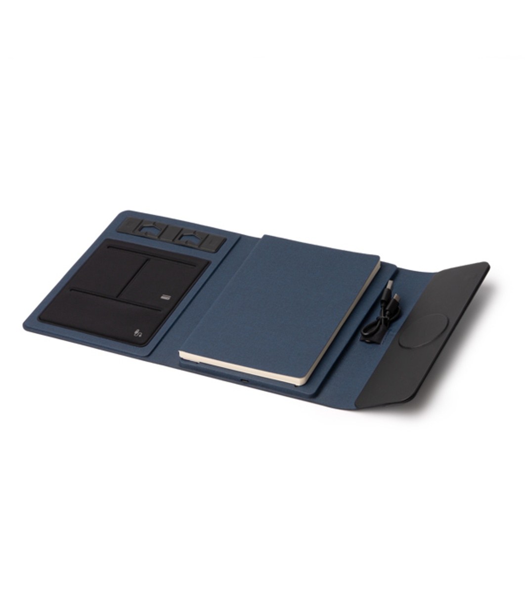 Stamina Dosar albastru închis cu încărcător wireless BAN Dosar multifuncțional din poliester reciclat cu:
