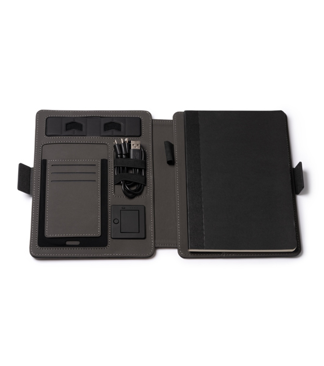 Dosarul multifuncțional SAMPER de culoare neagră, cu încărcător wireless încorporat