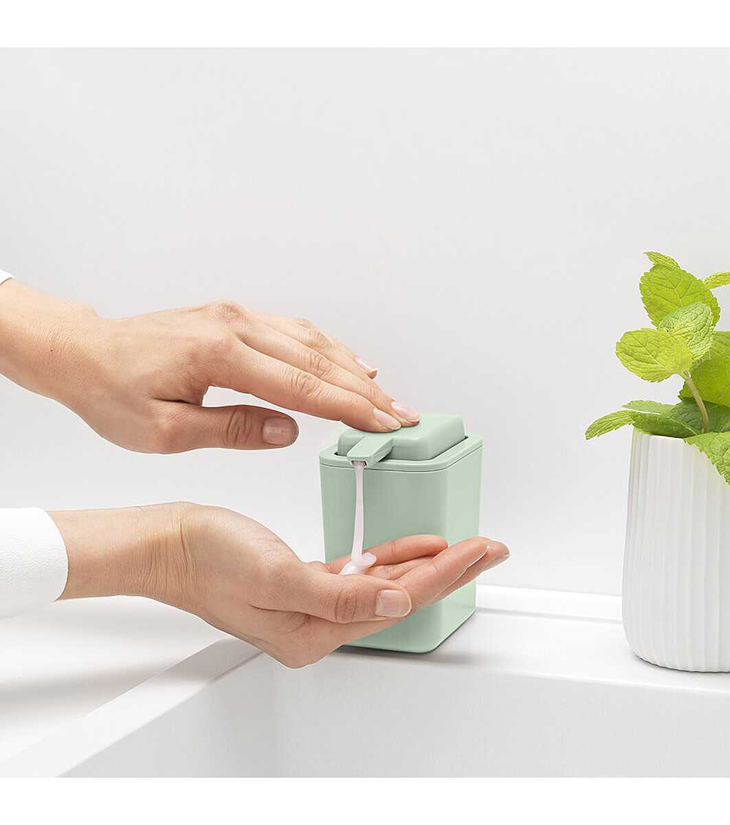Se potrivește și în organizatorul de chiuvetă Brabantia Un dozator de săpun lichid de 250 ml care nu picură, rămâne pe loc fără a zgâria suprafața, este ușor de demontat și spălat. este design si garantie de cinci ani de la Brabantia.