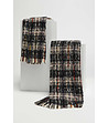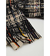 Franjurile de la capetele eșarfei adaugă eleganță și rafinament.