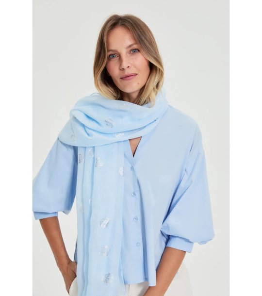 Eșarfă albastru deschis pentru femei cu buline metalice