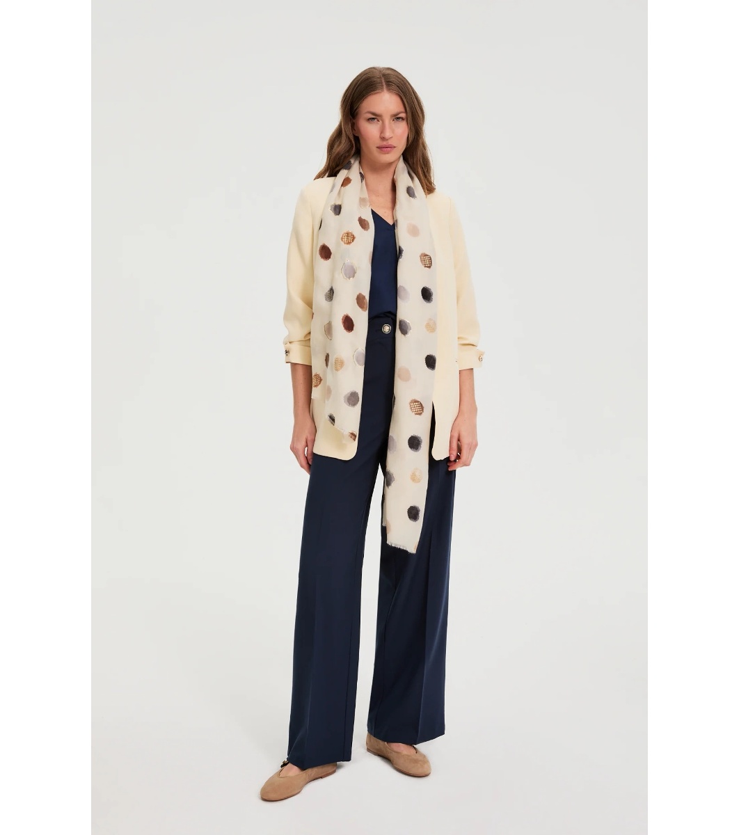 Moodo Eșarfă bej cu buline Eșarfă dreptunghiulară de damă cu motive rotunde imprimate în nuanțe contrastante.