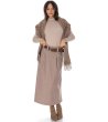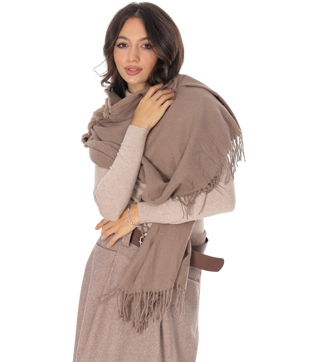Roh Eșarfă bej de damă cu puf Eșarfă lungă cu o parte centrală din puf artificial și margini moi cu franjuri.