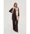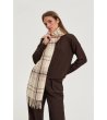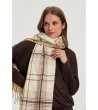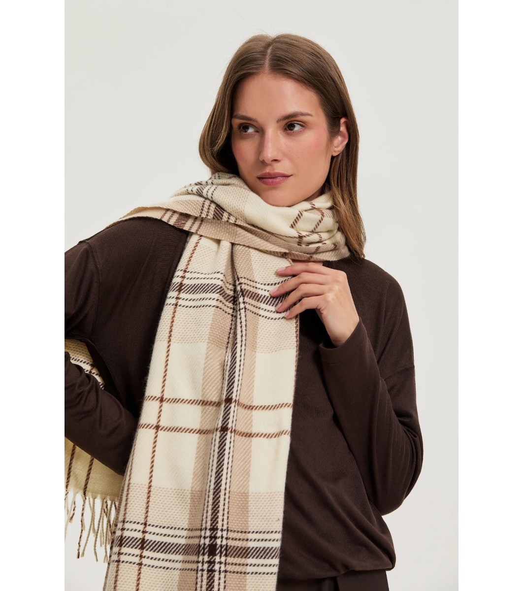 Eșarfa are un design clasic în carouri și franjuri la margini. Este potrivită pentru sezonul toamnă-iarnă, oferind confort și stil.