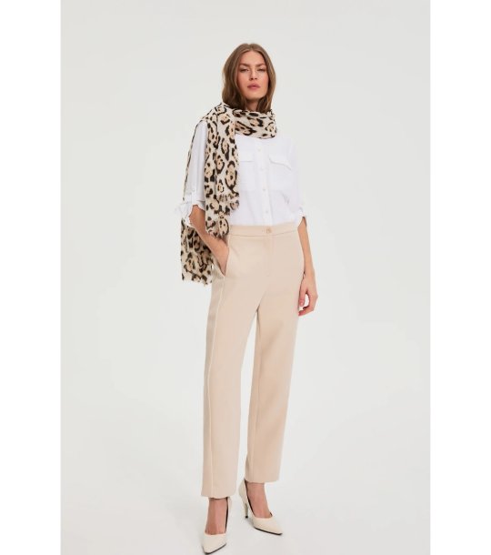 Eșarfă bej pentru femei cu imprimeu leopard