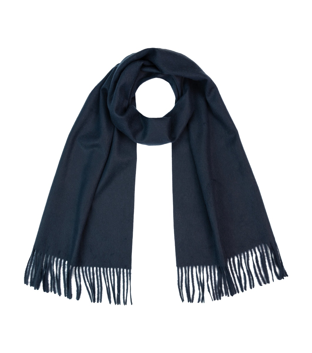 Eșarfă bleumarin cu franjuri|||| 80% poliester, 20% lână