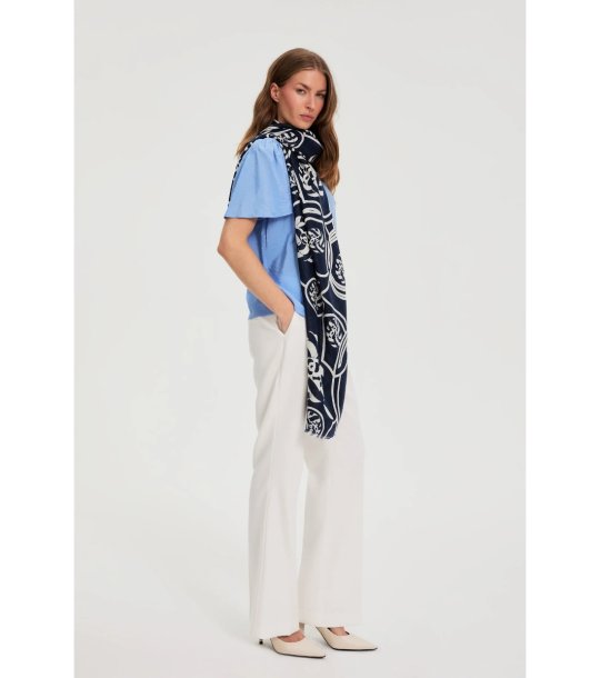 Eșarfă bleumarin pentru femei cu imprimeu floral