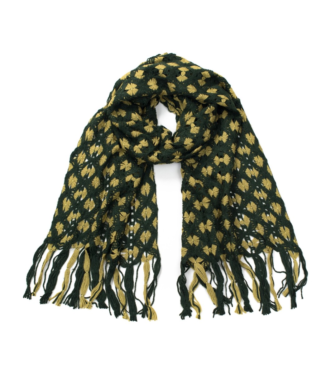 ART of POLO Eșarfă cu motiv geometric în verde și muștar, cu franjuri lungi Eșarfă ajurata