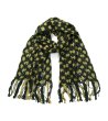 Eșarfă cu motiv geometric în verde și muștar, cu franjuri lungi