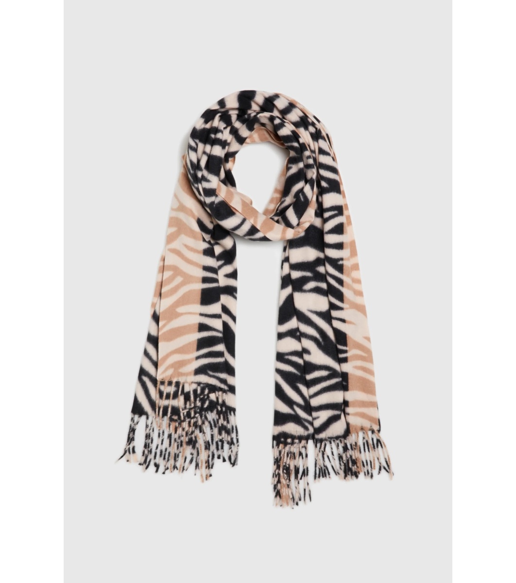 Eșarfa are un design curat și o lungime care permite o varietate de moduri de purtare.