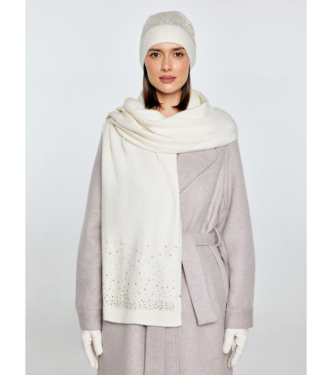 Eșarfă de damă de culoare crem cu pietricele
