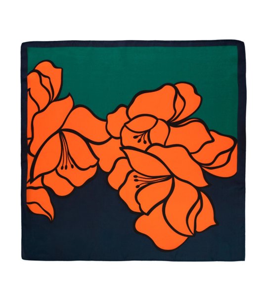 Eșarfă de damă în culorile bleumarin, petrol și coral Poppy