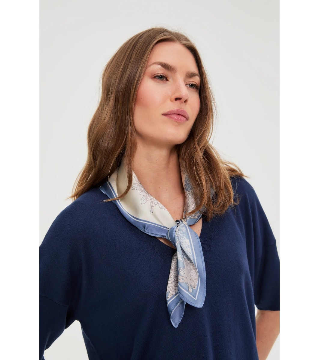 Eșarfă de mătase albastră pentru femei cu imprimeu floral
