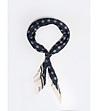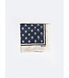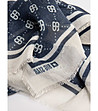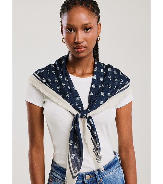 Eșarfă dreptunghiulară subțire cu imprimeu cu logo pe toată suprafața și bordură contrastantă pe margine. Marginile au franjuri scurte.