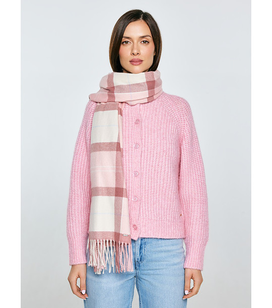 Big Star Eșarfă în carouri roz și ecru cu franjuri Eșarfă de damă cu model în carouri și franjuri scurte pe margini. Formă dreptunghiulară și textură moale.
