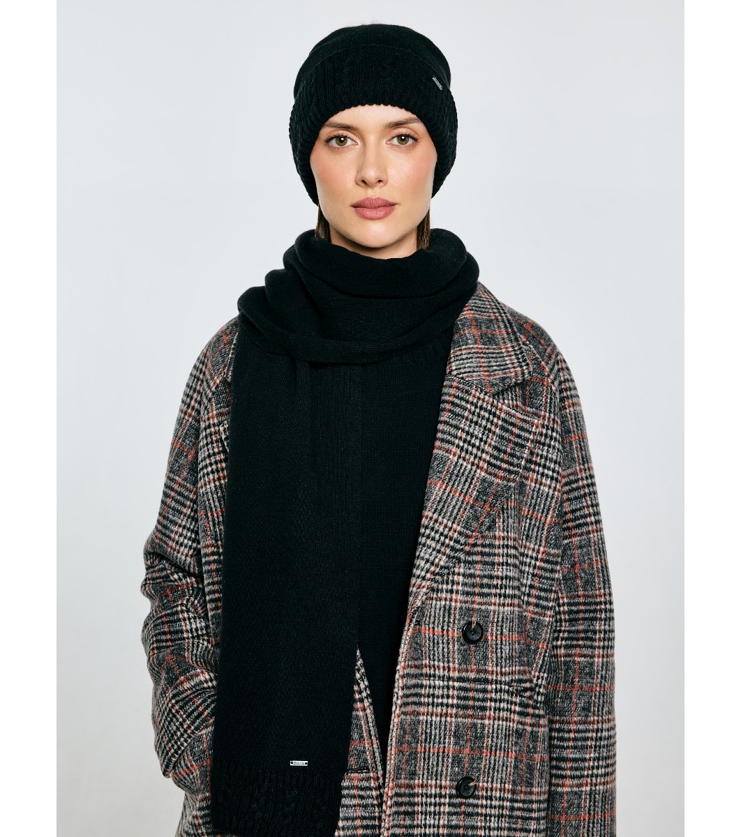 Big Star Eșarfă neagră tricotată pentru femei Eșarfă dreptunghiulară tricotată pentru femei, cu o tricotare fină și uniformă.
