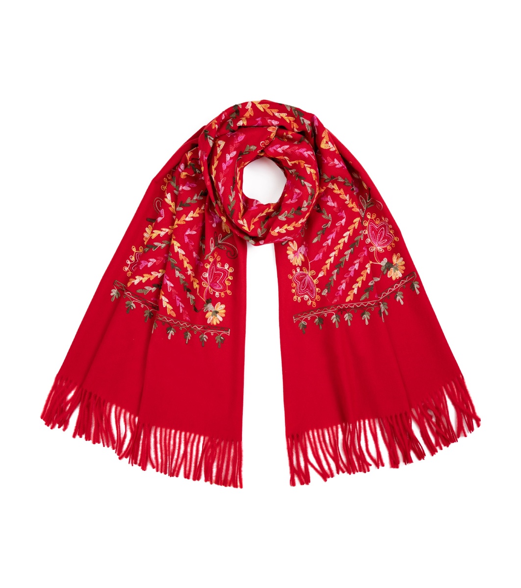 Eșarfă roșie cu broderie florală Fiona