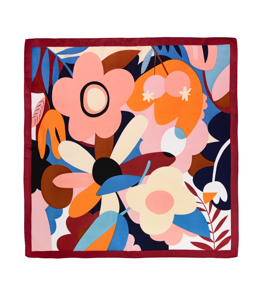 Eșarfă roșu închis cu motive multicolore JUNGLA