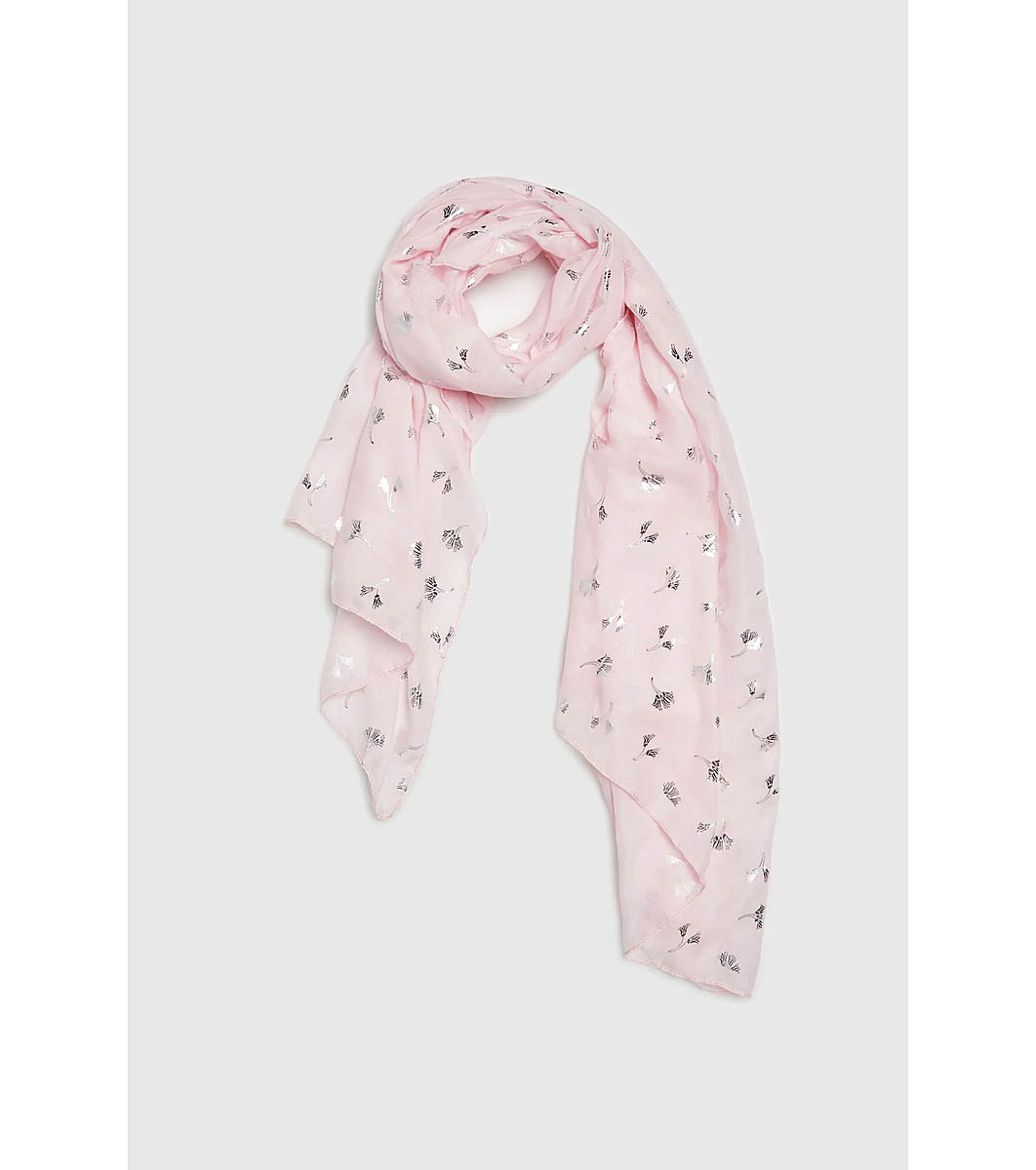 Moodo Eșarfă roz deschis cu motive argintii Țesătură fină