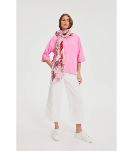 Eșarfă roz pentru femei cu imprimeu floral