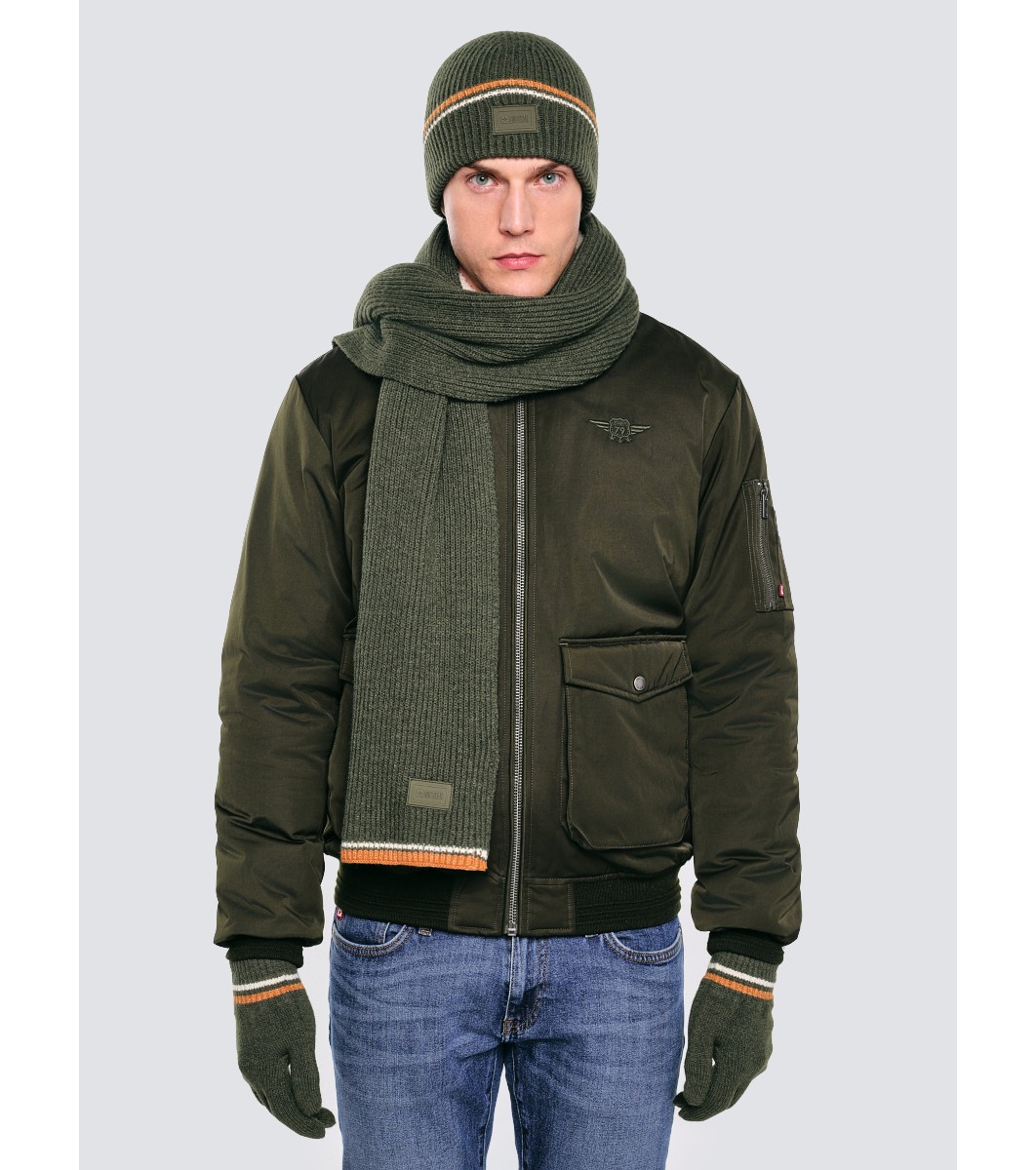 Big Star Eșarfă tricotată verde pentru bărbați, cu bordură contrastantă Eșarfă tricotată pentru bărbați, cu textură cu nervuri mari.