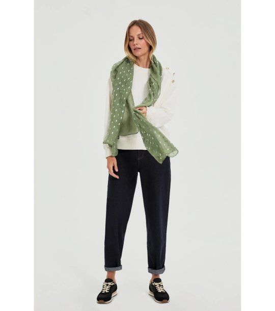 Moodo Eșarfă verde de damă cu fire metalice Eșarfă dreptunghiulară cu o structură ușor transparentă.