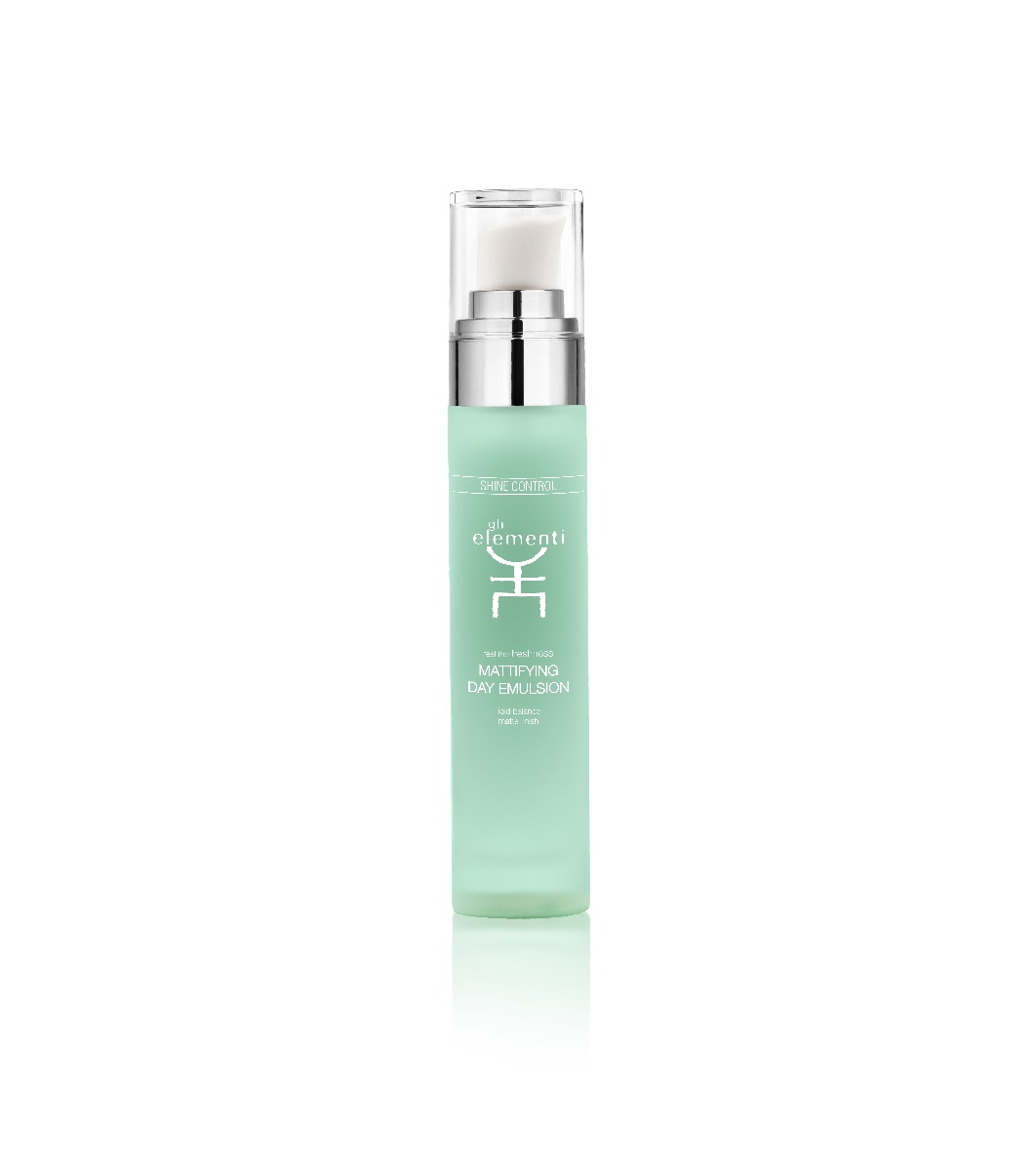 Gli Elementi Emulsie matifiantă de zi 50 ml • O emulsie ușoară de zi special concepută pentru a matifia și reechilibra tenul mixt și gras. • Foarte senzorială și rapid absorbită, reduce luciul, reglează excesul de sebum și rafinează textura pielii, lăsând-o netedă și uniformă. • Oferă o acțiune multi-focus: reechilibrează treptat pielea cu sebum modificat, o protejează de factorii de stres din mediul înconjurător prin întărirea protecției antioxidante și oferă un efect mat de lungă durată, care îmbunătățește și durabilitatea machiajului. Pielea este instantaneu hidratată și impecabilă pe tot parcursul zilei.