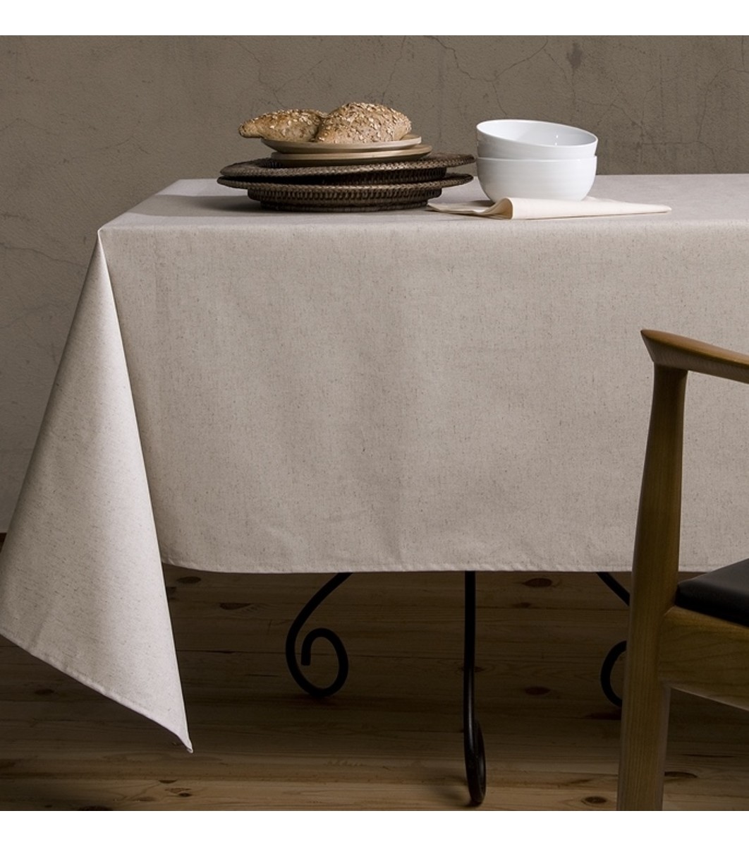 Atenas Față de masă bej LINO NATURAL 150x150 cu înveliș de teflon Model cu un model curat, într-o singură culoare.