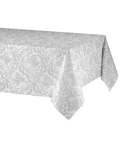 Model cu model ornamental în relief pe întreaga suprafață. Fața de masă are un tratament anti-pete, asigurat de un strat dublu de rășină și un strat suplimentar de teflon pentru protecție împotriva lichidelor și murdăriei.