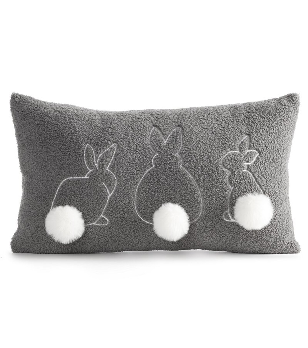 Față de pernă decorativă gri cu iepurași brodați 30x50 cm