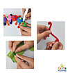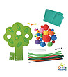 Conținut: pompoane de diferite dimensiuni colorate, copac din carton, lipici alb, șnururi flexibile colorate, aripi tăiate din material textil, hârtie colorată și ochi în mișcare.