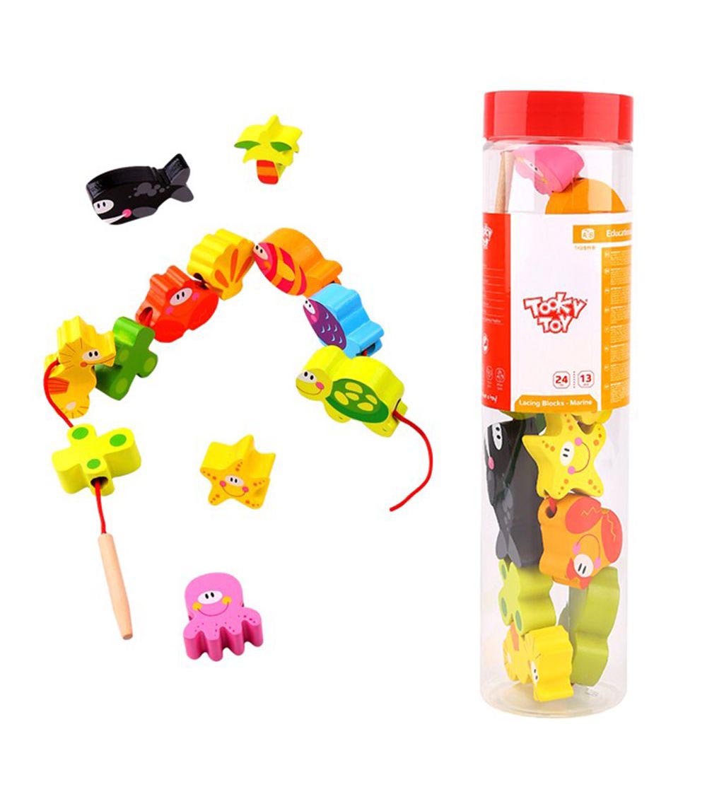 Cu ajutorul blocurilor de lemn copiii vor învăța să recunoască animalele marine, să povestească despre ele, să imite sunetele pe care le scot.