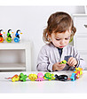 Perfectă pentru înșirare și proiectare, jucăria susține abilitățile motorii fine, coordonarea mână-ochi, potrivirea, sortarea, desenul și creativitatea.