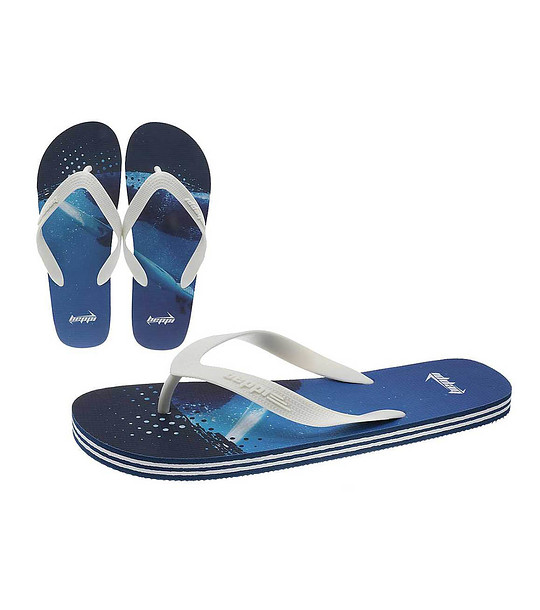 Flip flops pentru tineret în bleumarin și alb cu imprimeu