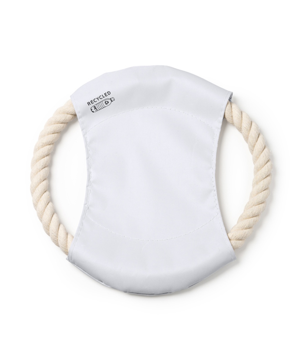 Frisbee pentru animale de companie cu material din poliester reciclat și șnur de bumbac.
