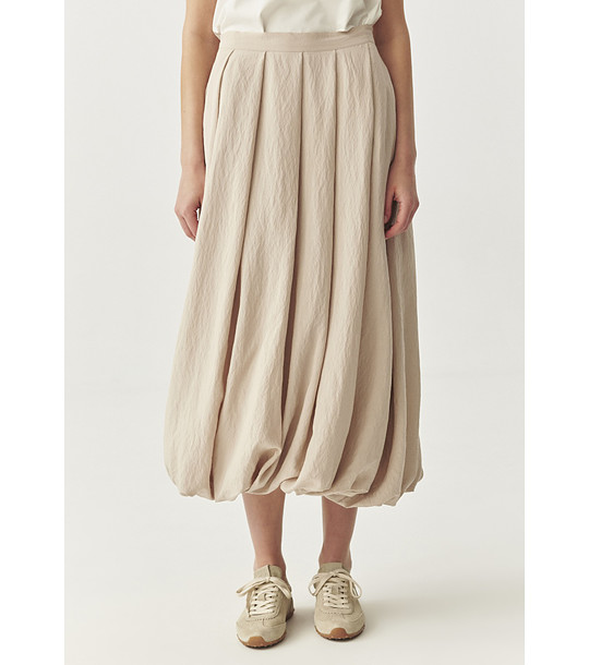 Tatuum Fustă bej Minelli cu model balon Fustă balon cu talie înaltă și curea lată.