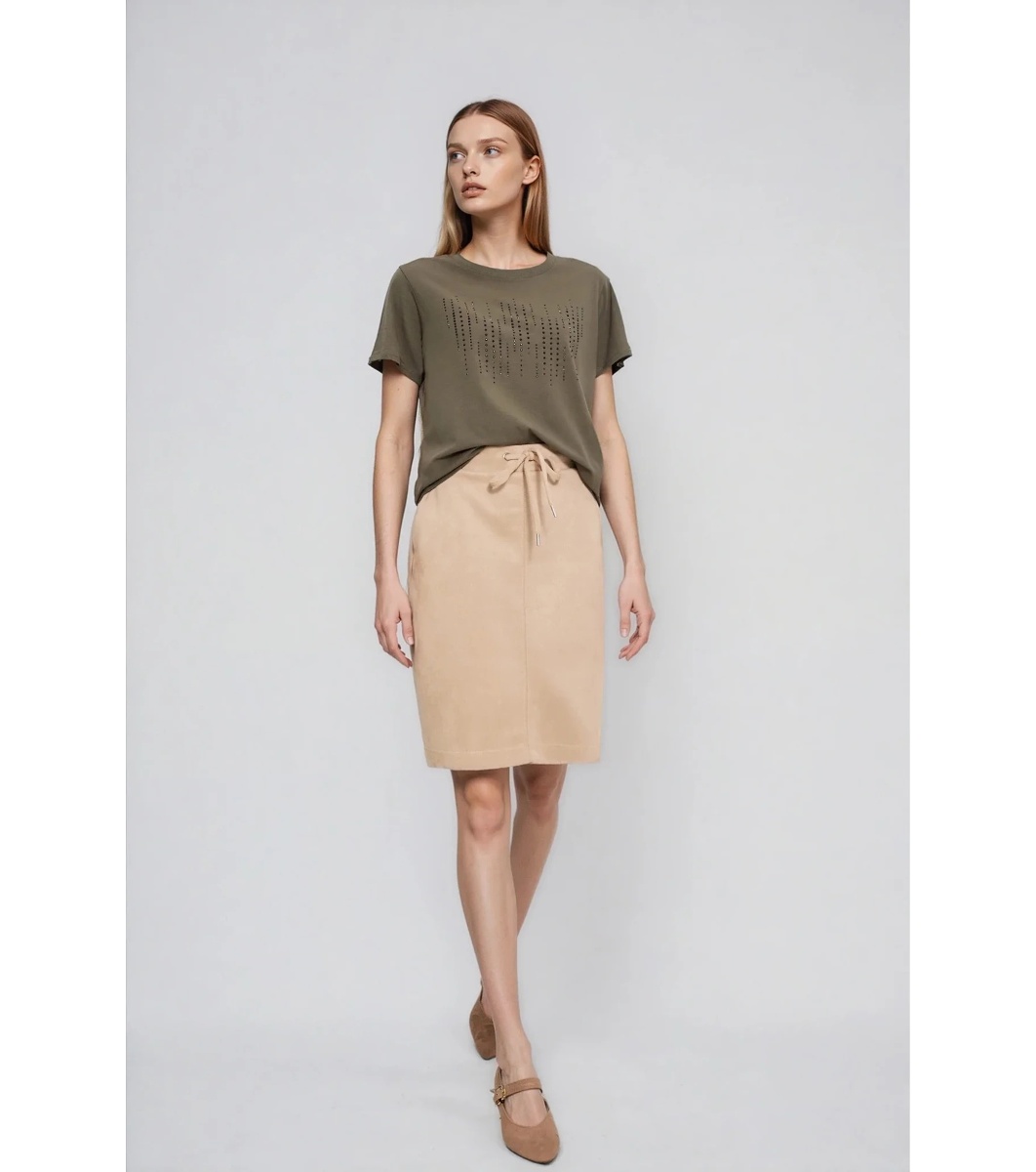 Fustă bej cu legătură în talie
