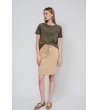 Moodo Fustă bej cu legătură în talie Fustă dreaptă până la genunchi