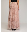 Fustă lungă din tul roz cu volane