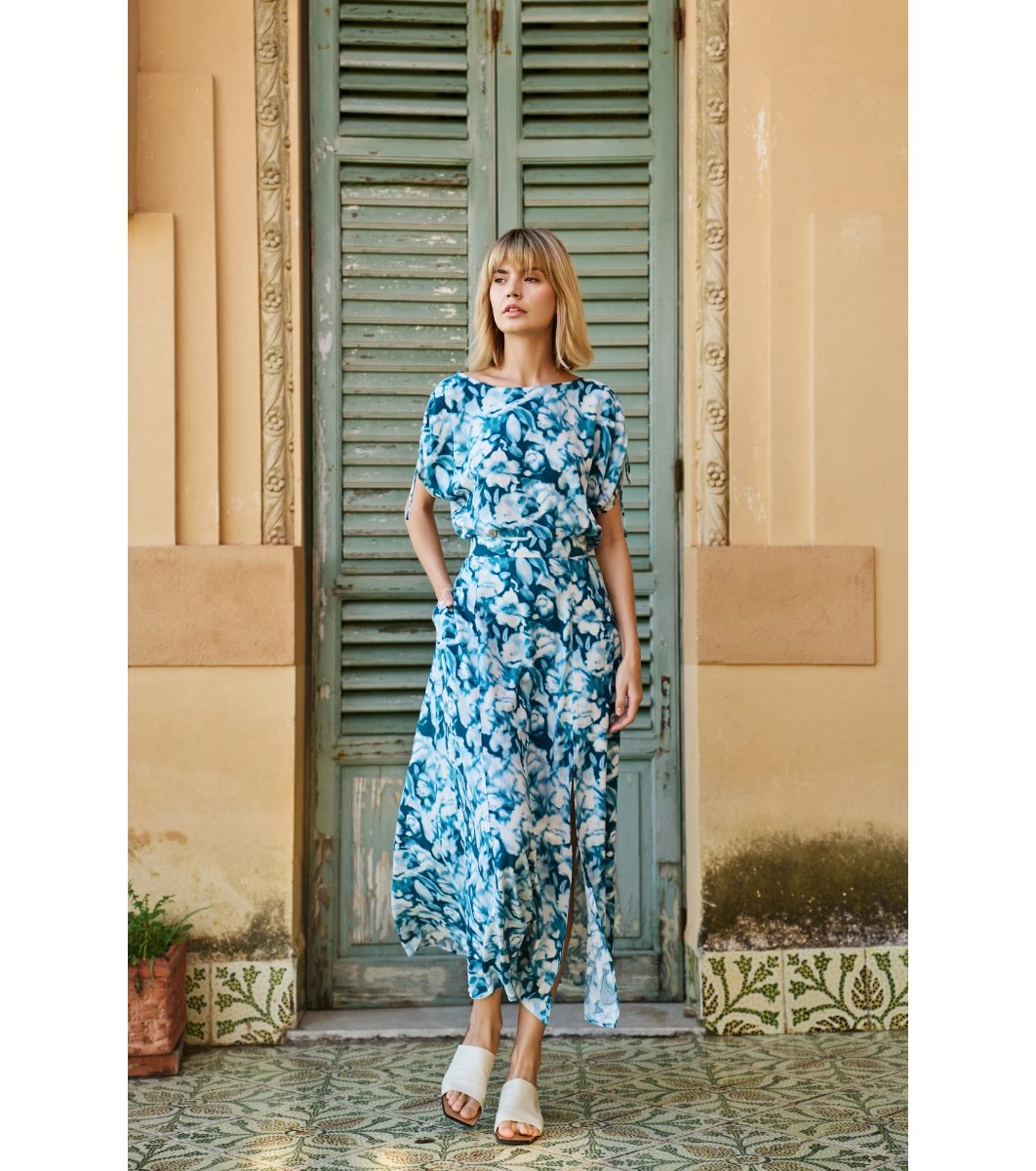 Fustă maxi cu imprimeu în culoarea albastru-verde