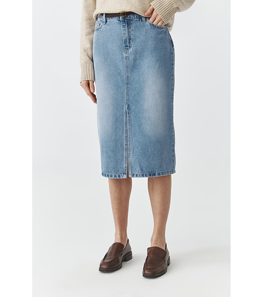 Fustă midi din denim albastru bumbac cu crăpătură MEDIANA
