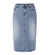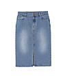 Fustă din denim cu lungime medie sub genunchi.