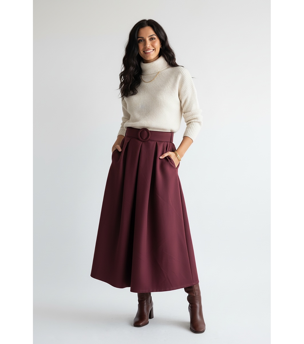 Fustă midi vișinie cu curea Tia