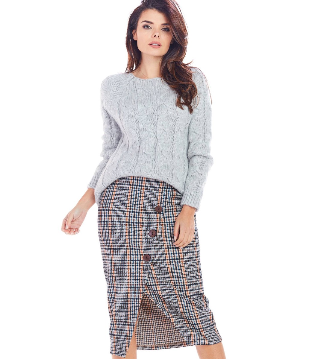 Awama Fustă în carouri albastru închis Gaya Șliț în față