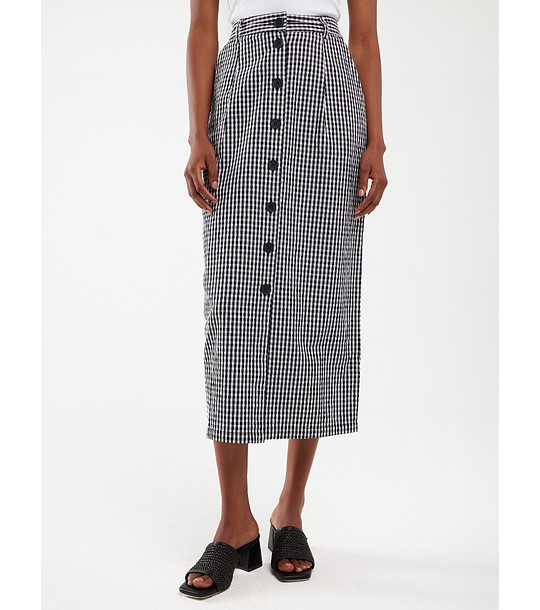 Fustă în carouri din bumbac, alb-negru, POLLI