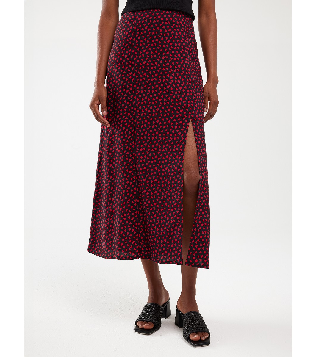 Big Star Fustă neagră cu imprimeu cu inimioare roșii DELUNI Talie înaltă