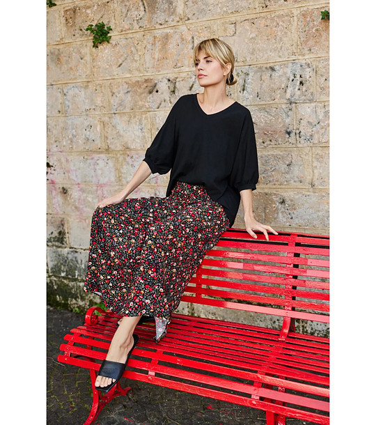 Moodo Fustă neagră cu imprimeu floral Talie largă, elastică