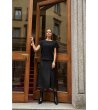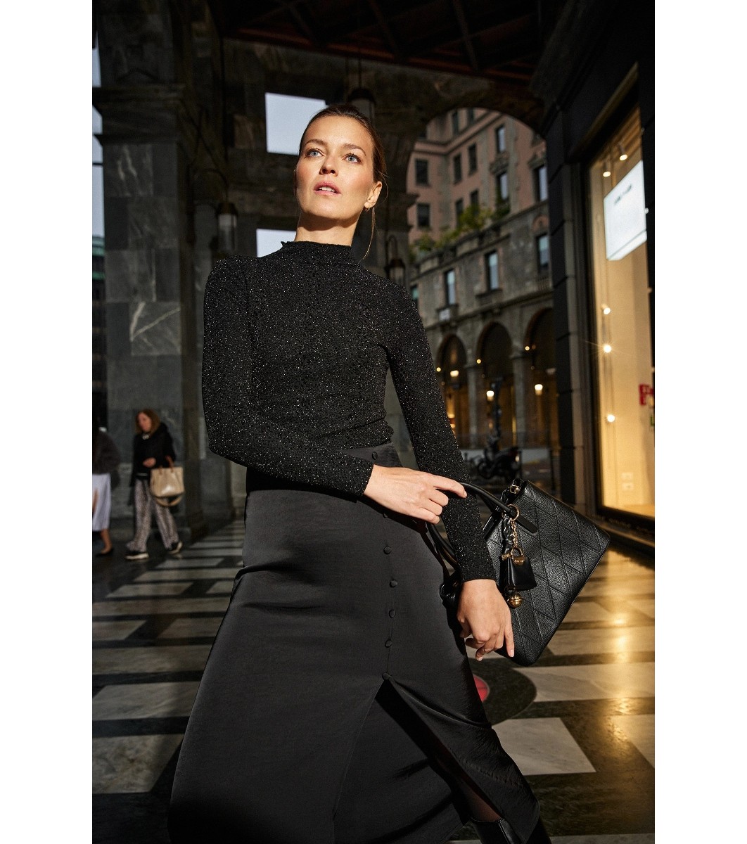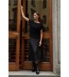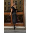 Moodo Fustă neagră de damă cu nasturi decorativi Fustă midi de damă cu siluetă dreaptă și ușor decupat în partea de jos.