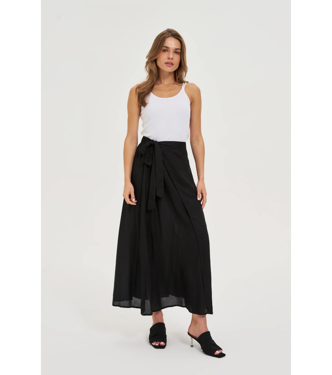 Moodo Fustă neagră maxi, model hug-me Talie elastică cu șnur