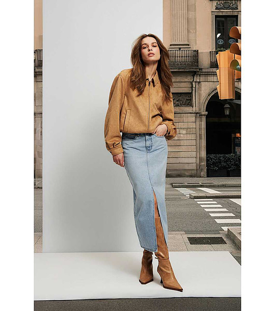 Moodo Fusta din denim de bumbac albastru deschis Talie înaltă